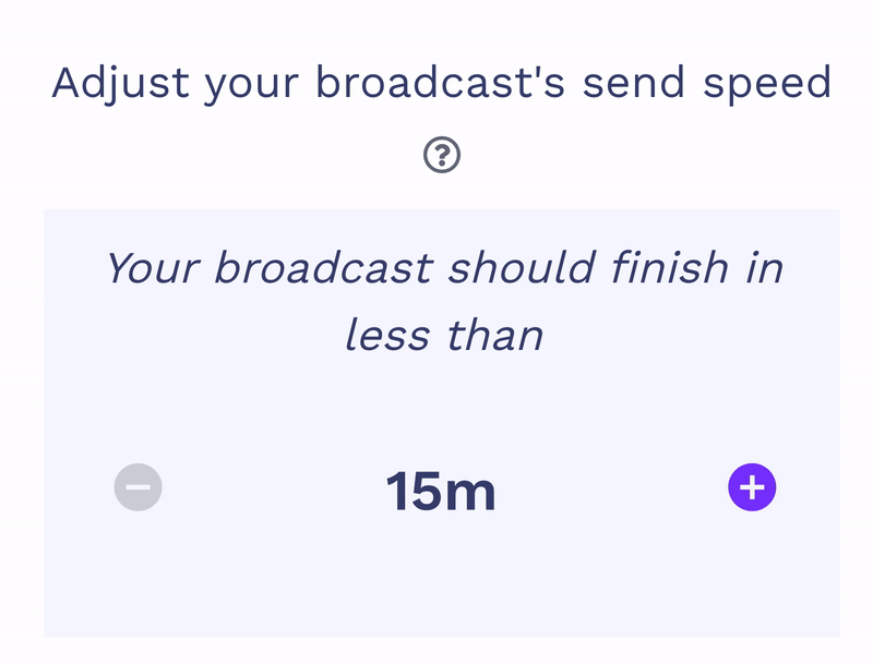 - Click the + sign next to your broadcast’s estimated completion time to increase your broadcasting period. By default Ascend will send at the highest send speeds made available for your campaign.