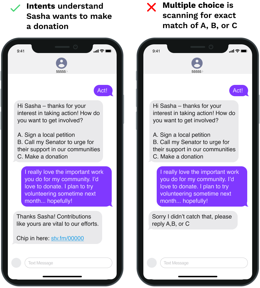 Now campaigns can use artificial intelligence to recognize more answers and reply with custom responses in flows. Launch sophisticated, interactive messaging at scale that enhances a subscriber’s experience